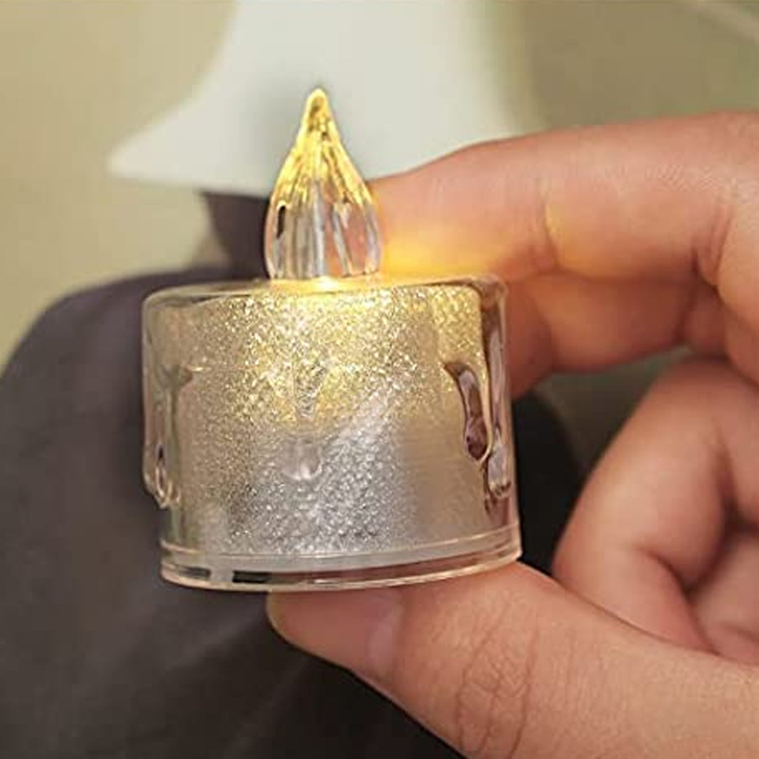 12 Pcs Flameless and Smokeless Decorative Acrylic Candles Transparent Led Tea Light Candle for Gifting, House, Diwali, Christmas, Festival, Events Decor Candles, Diwali Item