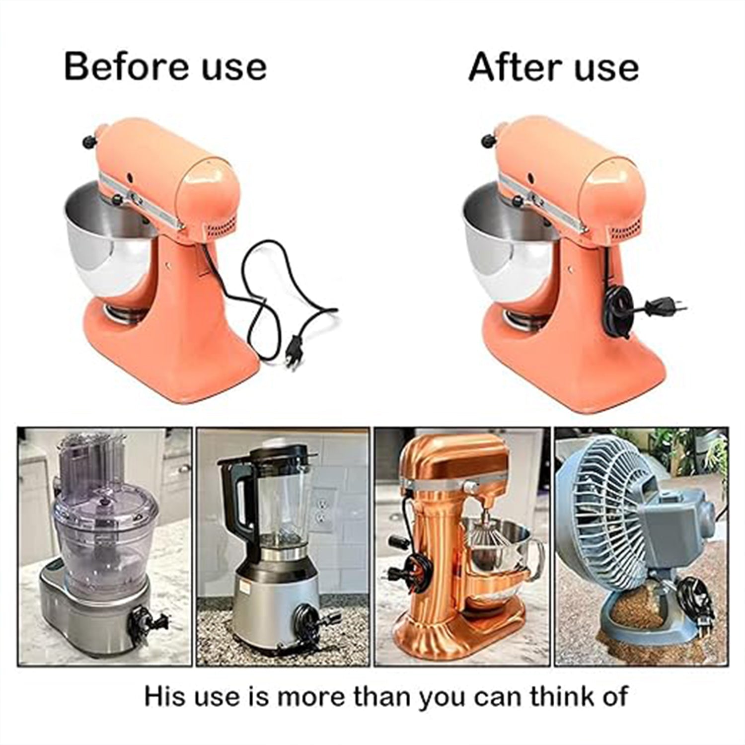 - Wide application: Widely used for cord storage of kitchen appliances, including coffee makers, juicers, blenders, air fryers, toasters, and pressure cookers.